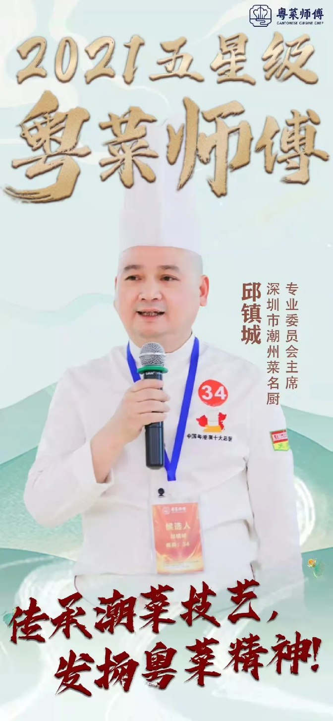 此次評選活動,來自深圳市潮州菜專業(yè)委員會的邱鎮(zhèn)城會長代表深圳餐飲界出戰(zhàn),最終獲得“五星級粵菜師傅名廚”榮譽稱號,是深圳潮州菜系唯一獲此殊榮的五星級名廚。邱鎮(zhèn)城學(xué)做潮汕菜30年,是深圳“精細潮州菜”的領(lǐng)軍人物,曾在米盧時代的國家足球隊擔(dān)任大廚,現(xiàn)任深圳市潮州菜名廚委員會主席,其烹飪技術(shù)屢獲好評,是中國粵港澳十大總廚,還是廣東十大南粵廚王、深圳市十佳行政總廚。邱鎮(zhèn)城在推廣、宣傳潮汕美食的同時,將潮汕文化推向首都、傳播全國,體現(xiàn)的是潮人愛拼敢贏、吃苦耐勞的精神。