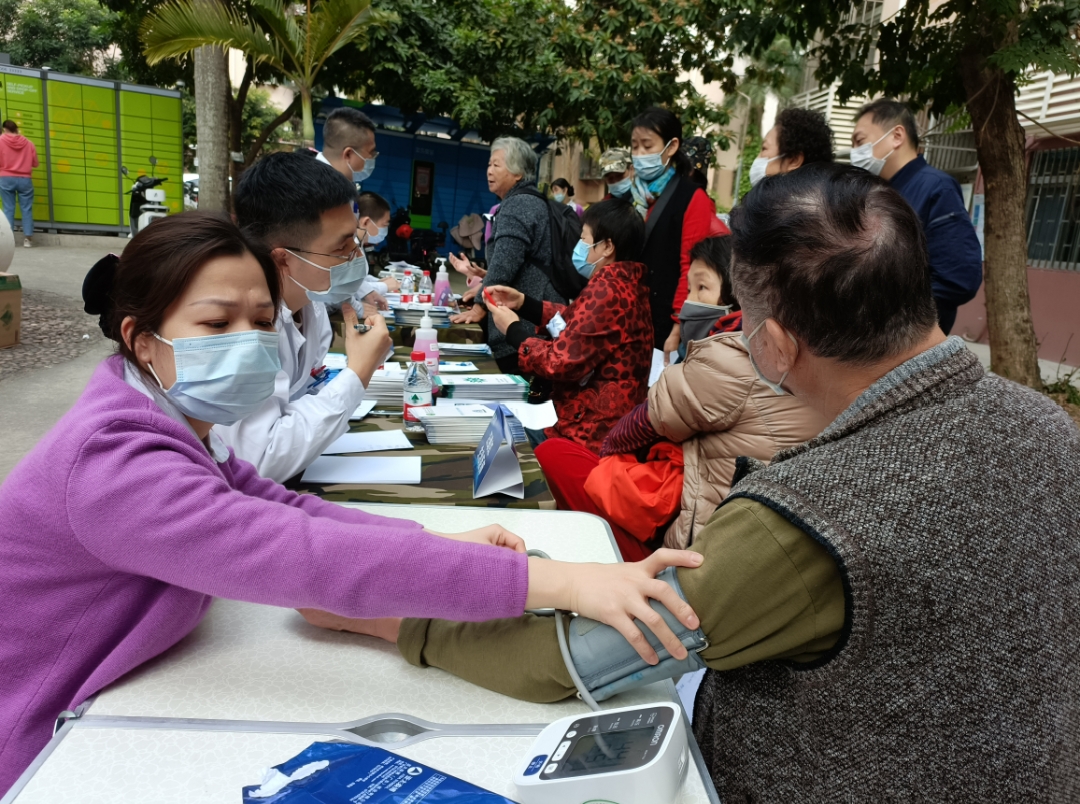 12月19日上午,深圳市人民醫(yī)院疼痛科11名專家與護士攜帶血壓計、血糖儀、聽診器、理療儀等儀器到街道退役軍人服務(wù)站開展“愛心義診送健康,為民服務(wù)暖人心”關(guān)愛退役軍人義診活動。為防范疫情風(fēng)險,服務(wù)站將健康服務(wù)分區(qū)域并安排工作人員查驗健康碼、行程碼、測體溫,參與人員須佩戴口罩方能進入活動現(xiàn)場。在服務(wù)站門口通風(fēng)處設(shè)置血糖與血壓測量處、專家醫(yī)生坐診處,在老兵活動室開展健康知識講座,在黨建活動室和老兵談心室開展身體理療服務(wù)。所有服務(wù)同時開展,退役軍人和居民自主決定參與順序,避免扎堆。