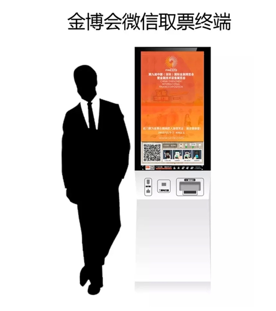 本次金博會(huì)將采用自助微信取票終端方式獲取門票入場(chǎng),展會(huì)現(xiàn)場(chǎng)【微信取票終端】免費(fèi)自助打印個(gè)性化門票,請(qǐng)關(guān)注下圖中取票終端設(shè)備: