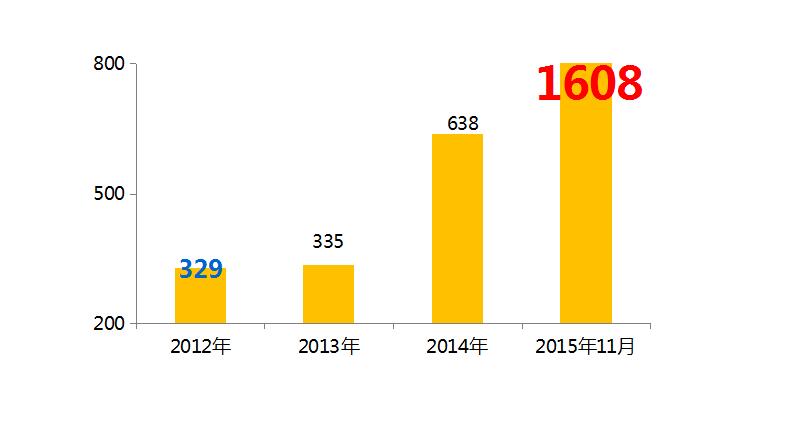 人力增長:截至2015年11月,新華深分個險人力達(dá)1608人,較2012年增長近5倍。