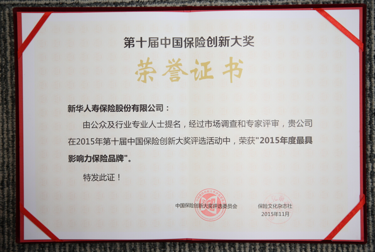 2015年度最具影響力保險品牌