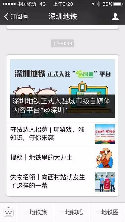12月1日,深圳地鐵官方微信“深圳地鐵”正式入駐“@深圳”平臺。這是國內首個城市級自媒體內容平臺“@深圳”上線以來,又一入駐的官方微信。