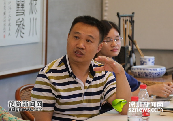 當天的講堂中,結合書法主題,李靜與聽課者圍坐一桌,以十分親切自然的方式與龍崗書法愛好者進行了交流。從書法的概念內涵,到書法由古至今的發(fā)展歷程,再到書法創(chuàng)作的理念精髓,李靜深刻剖析了書法的基本含義,深入淺出講解了書法中的歷史因子。在現(xiàn)場聽課的書法愛好者們聽得認真,課后還與李靜進行了深入的交流。