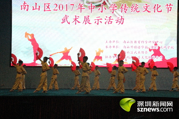 南山區(qū)2017年中小學(xué)傳統(tǒng)文化節(jié)武術(shù)展示活動由南山區(qū)教育科學(xué)研究中心主辦,南山外國語學(xué)校(集團)大沖學(xué)校和南山區(qū)武術(shù)協(xié)會承辦。南山區(qū)教育科學(xué)研究中心主任余耀賢介紹,為進一步弘揚優(yōu)秀中華傳統(tǒng)文化,落實立德樹人的根本任務(wù),南山區(qū)教育局舉行了首屆傳統(tǒng)文化節(jié)活動,開展了經(jīng)典詩詞特色展演、中小學(xué)書法大賽、中國戲曲和民族樂器比賽、中小學(xué)生圍棋大賽、傳統(tǒng)文化沙龍和專家報告等形式多樣的活動。