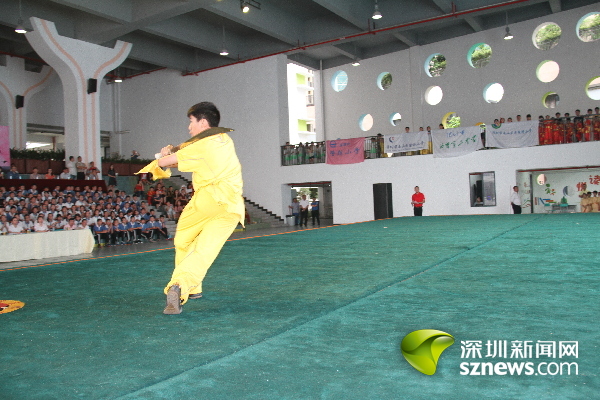 深圳新聞網(wǎng)訊(記者 王志明 通訊員趙小平)長拳如虹,刀光棍影。5月26日,南山區(qū)2017年中小學(xué)傳統(tǒng)文化節(jié)武術(shù)展示活動在南山外國語學(xué)校(集團)大沖學(xué)校精彩上演,來自南山區(qū)西麗二中、南頭城小學(xué)等16所學(xué)校幼兒園的師生“以武會友”,進行了太極劍、南拳和刀術(shù)等48個項目角逐,并向大家展示了所學(xué)到的“中國功夫”。南山區(qū)副區(qū)長練聰觀看了武術(shù)展示。