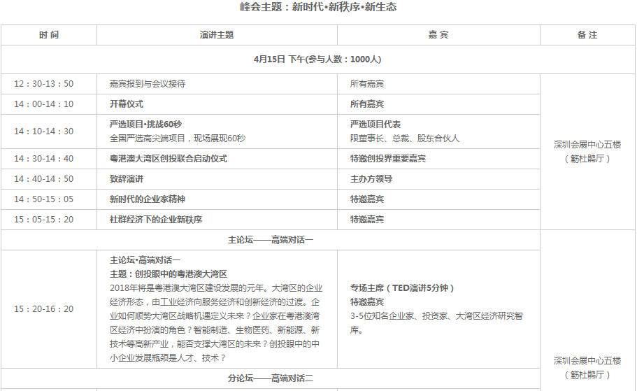 2018總裁創(chuàng)新峰會(huì)以“新時(shí)代、新秩序、新生態(tài)”為主題,秉承“全球智慧、共享發(fā)展”理念,以全球化視野的戰(zhàn)略性眼光,順勢大眾創(chuàng)業(yè)、萬眾創(chuàng)新和粵港澳大灣區(qū)的戰(zhàn)略機(jī)遇,積極推動(dòng)建設(shè)新時(shí)代企業(yè)命運(yùn)共同體,通過“主旨演講+高端對(duì)話+資本對(duì)接會(huì)”,圍繞科技、產(chǎn)業(yè)、金融,關(guān)注創(chuàng)新創(chuàng)業(yè)與創(chuàng)投,邀請(qǐng)政界領(lǐng)袖、中外知名企業(yè)總裁,500強(qiáng)企業(yè)商學(xué)院院長、知名投資家、智庫專家、商會(huì)協(xié)會(huì)代表、財(cái)經(jīng)媒體等,共同探討新經(jīng)濟(jì)背景下中國企業(yè)可持續(xù)發(fā)展的機(jī)遇與挑戰(zhàn)。
