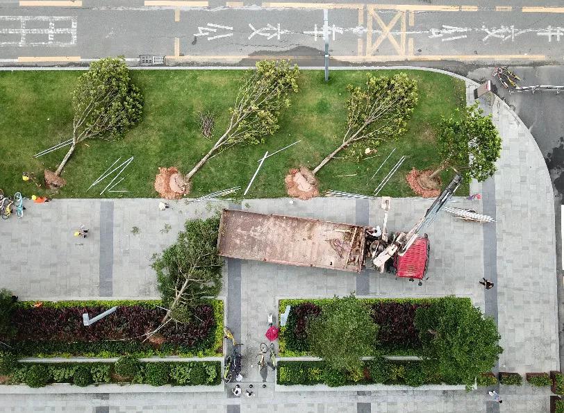 倒伏在地的樹木陸陸續(xù)續(xù)被清理