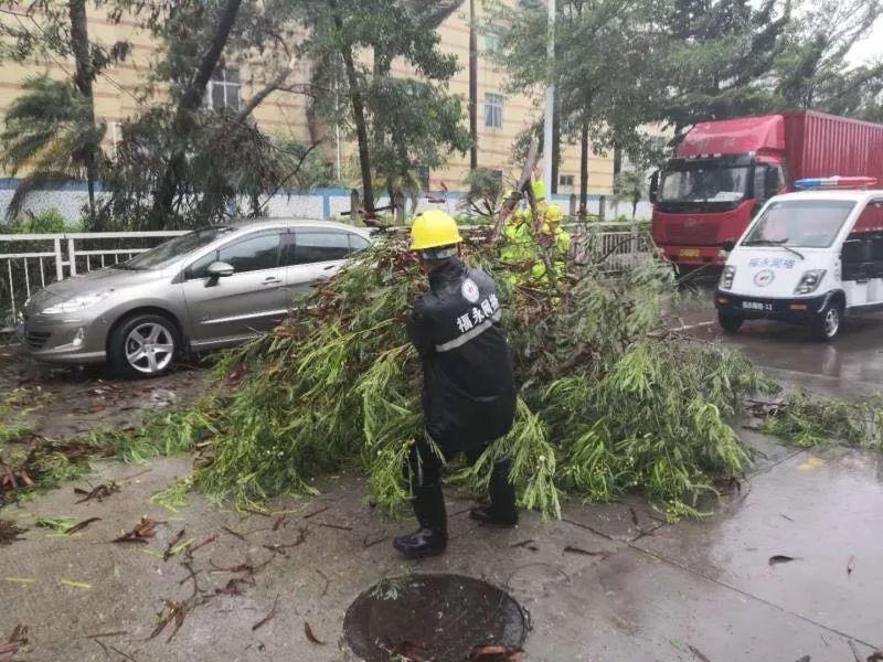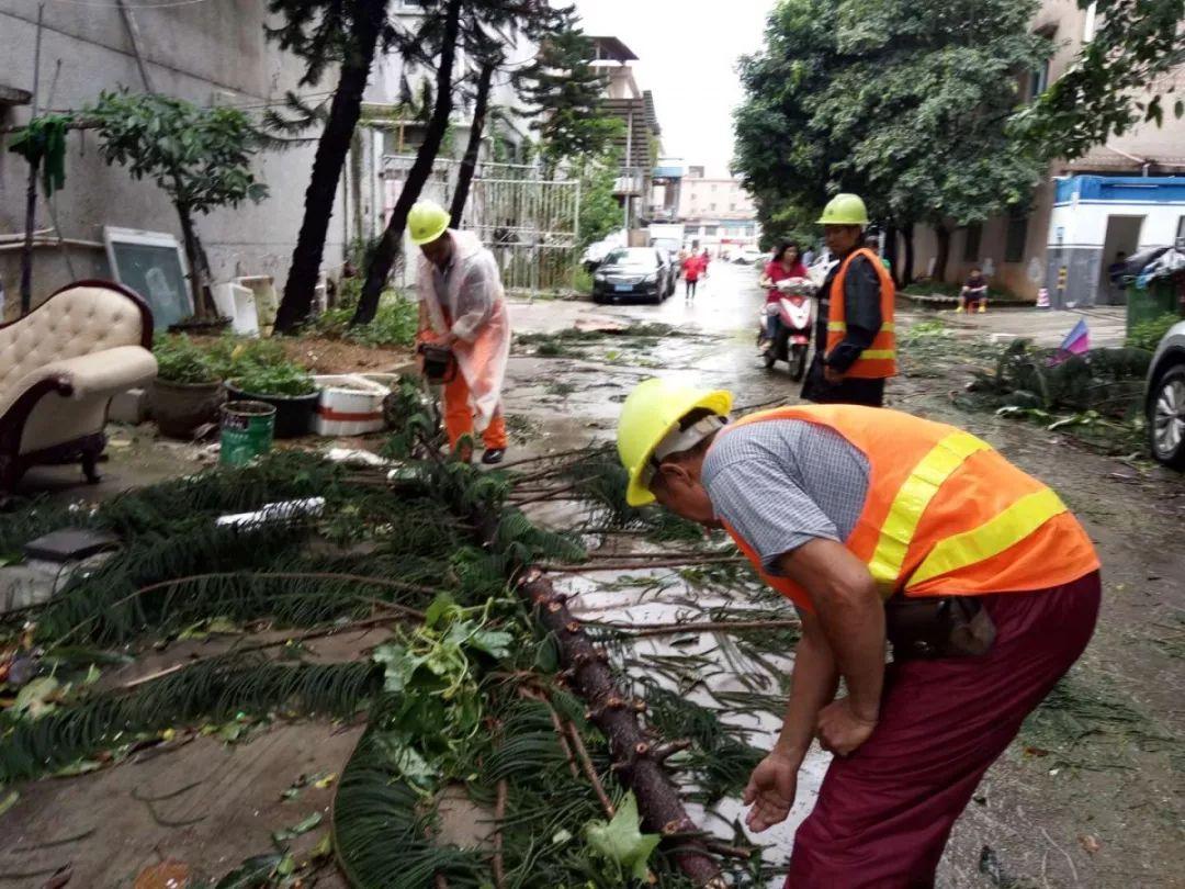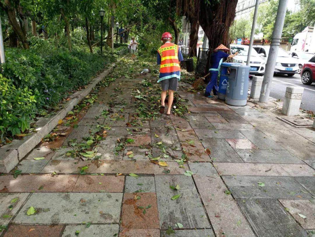 據(jù)統(tǒng)計(jì),截至17日下午6時(shí),福永街道共出動(dòng)搶險(xiǎn)人員770人,出動(dòng)車輛45臺(tái),清除路面障礙130余處,疏通道路邊溝橋涵70余處,修復(fù)交通設(shè)施45處,連夜貫通、清洗主干道路33條,扶正樹木283棵,清理枝葉約215.5噸、垃圾約198.5噸,修復(fù)垃圾桶630個(gè)、果皮箱330組,修復(fù)路燈15桿。