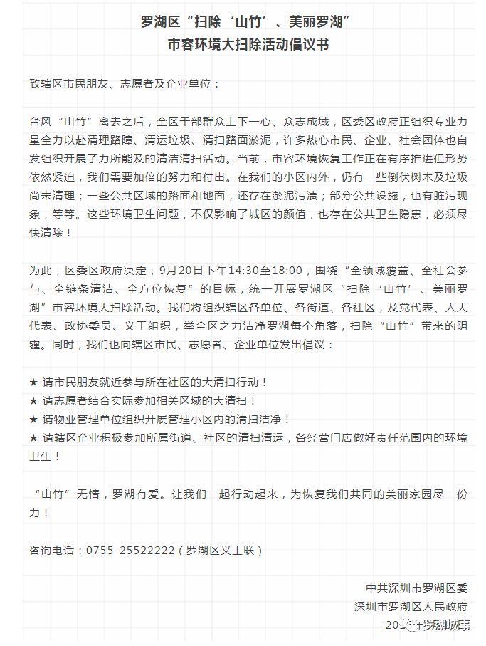 為此,區(qū)委、區(qū)政府緊急決定,于昨天下午在全區(qū)范圍內開展“掃除‘山竹’、 美麗羅湖”大清掃活動。
