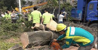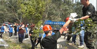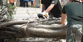 和大家一起搬運樹木、指揮交通
