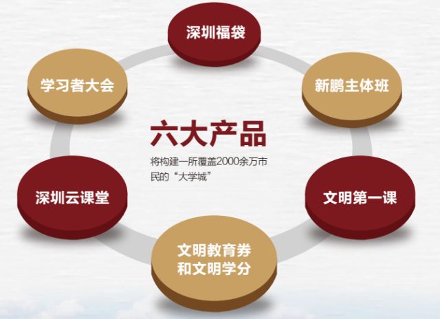 我們以構(gòu)建一個覆蓋2000余萬市民的終身學(xué)習(xí)平臺、將深圳市打造成一個培養(yǎng)現(xiàn)代文明市民的“大學(xué)城”為愿景,推出新版深圳福袋、新鵬主體班、文明第一課、深圳云課堂、學(xué)習(xí)者大會等產(chǎn)品。
