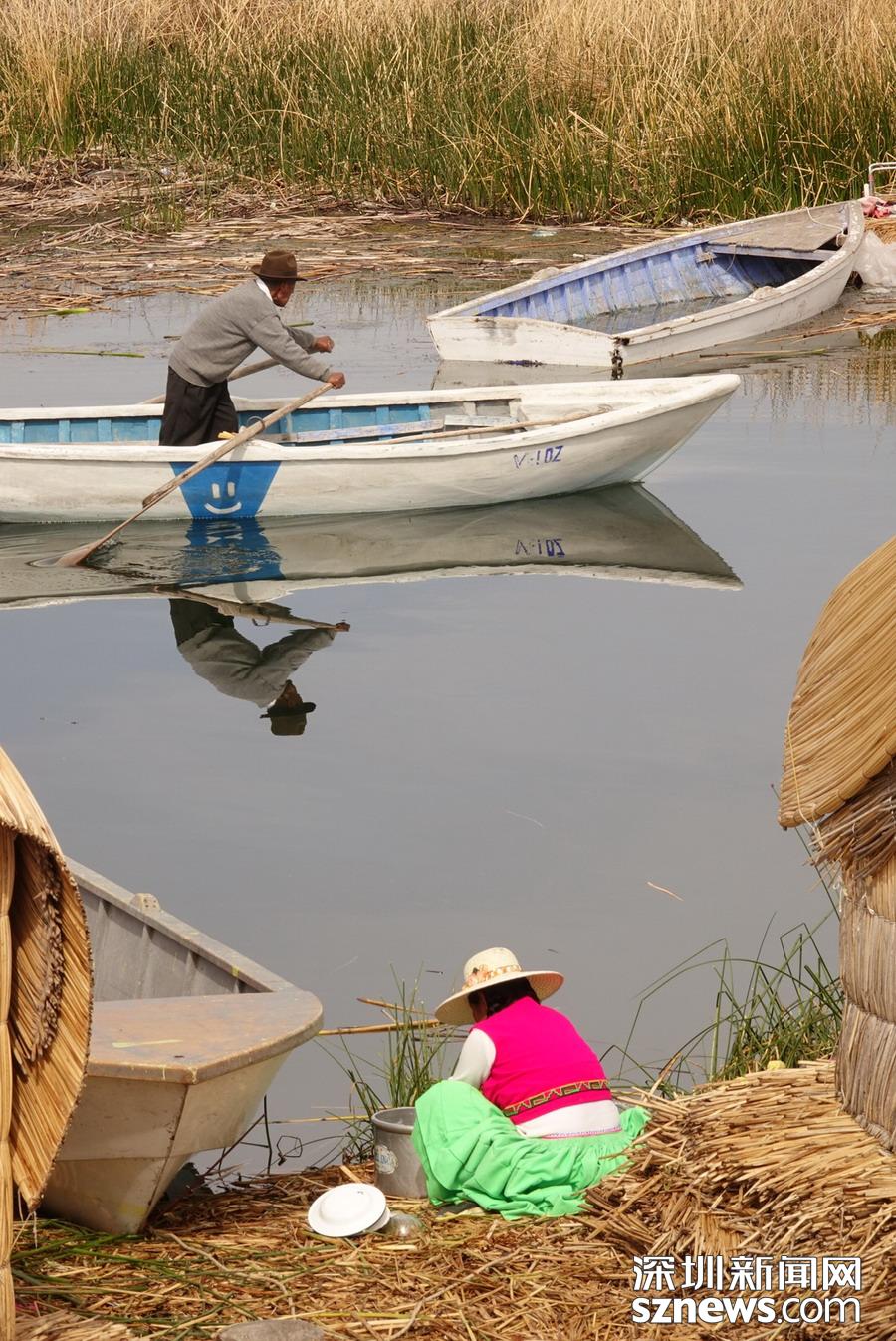 早至遠(yuǎn)古,印第安人用香蒲編成小舟或筏子,下湖捕魚。湖中還有幾十個印第安人烏羅族居住的“漂浮島”,它們是用香蒲在湖面堆集而成的人工島,島上的居民都以捕魚為生。李仁奇 攝