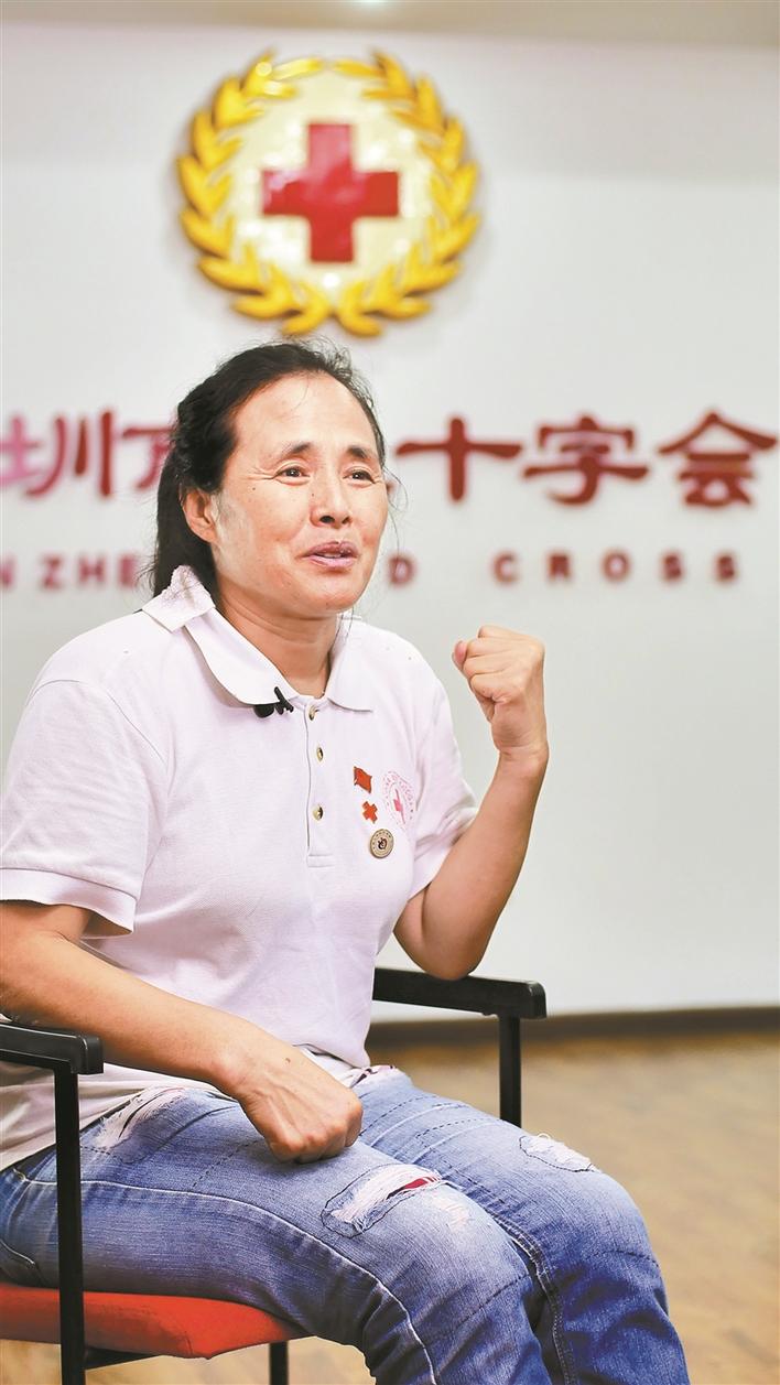 1997年,我從濟(jì)南市商河縣的農(nóng)村來到深圳,幫妹妹照看孩子。一次偶然的機(jī)會,我看到路邊一輛無償獻(xiàn)血車,車上寫著缺A、B、O型血,這讓我想起了小時(shí)候看過的小人書,白求恩大夫獻(xiàn)出300毫升鮮血挽救了八路軍傷員的生命,心想現(xiàn)在自己也有機(jī)會通過獻(xiàn)血去救助危重的病人,真的太好了。漸漸地,我成了深圳市紅十字會的“常客”,也成了深圳市紅十字會的志愿者。至今,我志愿服務(wù)時(shí)間近6萬小時(shí),無償獻(xiàn)血316次。