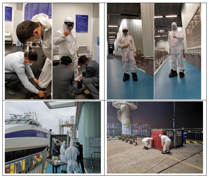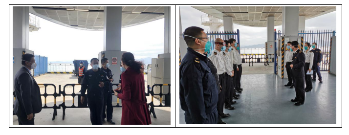 港口各級干部員工勇于擔(dān)當(dāng)、迎難而上,勠力同心、眾志成城,共同筑牢嚴(yán)防疫情輸入的堅(jiān)強(qiáng)防線,用實(shí)際行動詮釋了“牢記使命勇?lián)?dāng)”。蛇口郵輪母港呂如福常務(wù)副總經(jīng)理與港口運(yùn)營中心林麗華總經(jīng)理連夜開會部署至深夜,第二天仍早早趕到現(xiàn)場與聯(lián)檢單位共同查勘旅客動線;賴乙??偙O(jiān)接到航班通知后,放棄值班休息第一時(shí)間趕到現(xiàn)場布置各項(xiàng)保障任務(wù),并親自為一線員工穿戴防護(hù)用品;港口一線員工面對夜間加開航班旅客人數(shù)多且有發(fā)燒旅客的情況,毫不退縮、沖鋒在前,順利完成保障任務(wù),一直到深夜客船和旅客動線消毒清場完畢才下班。