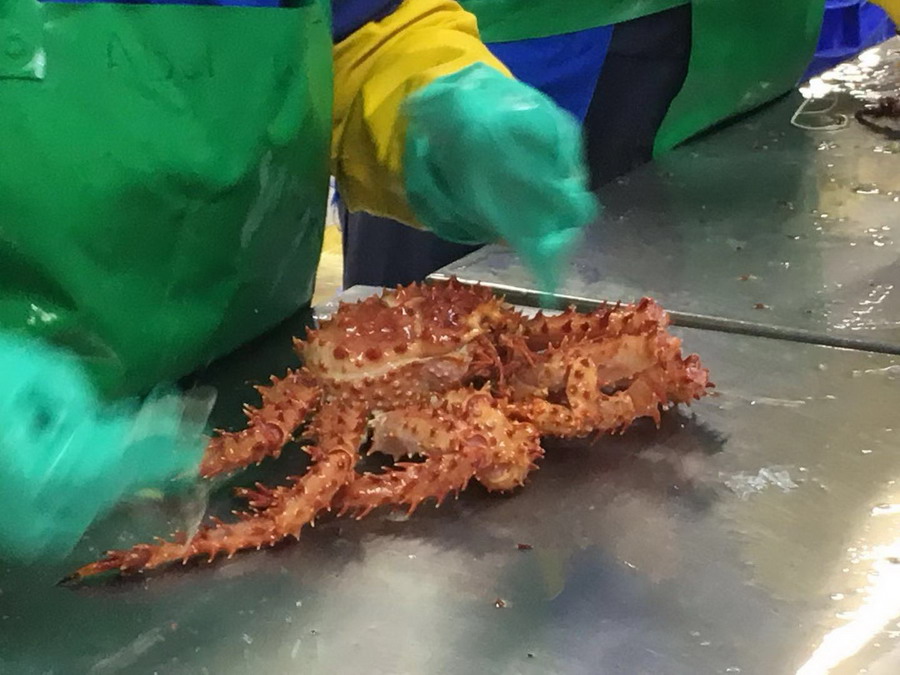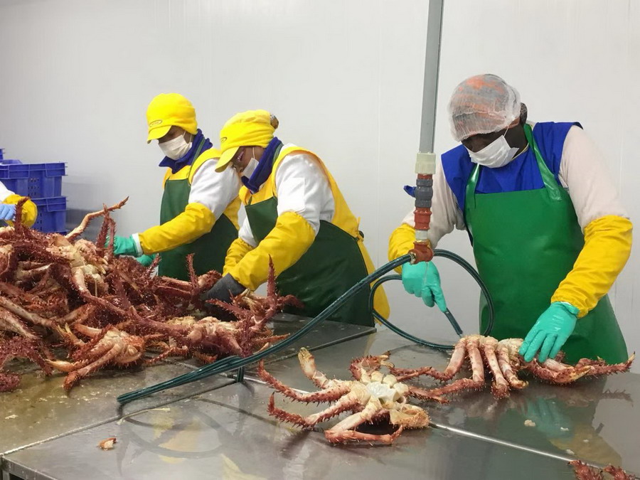 智利蜘蛛蟹加工基地。李仁奇攝