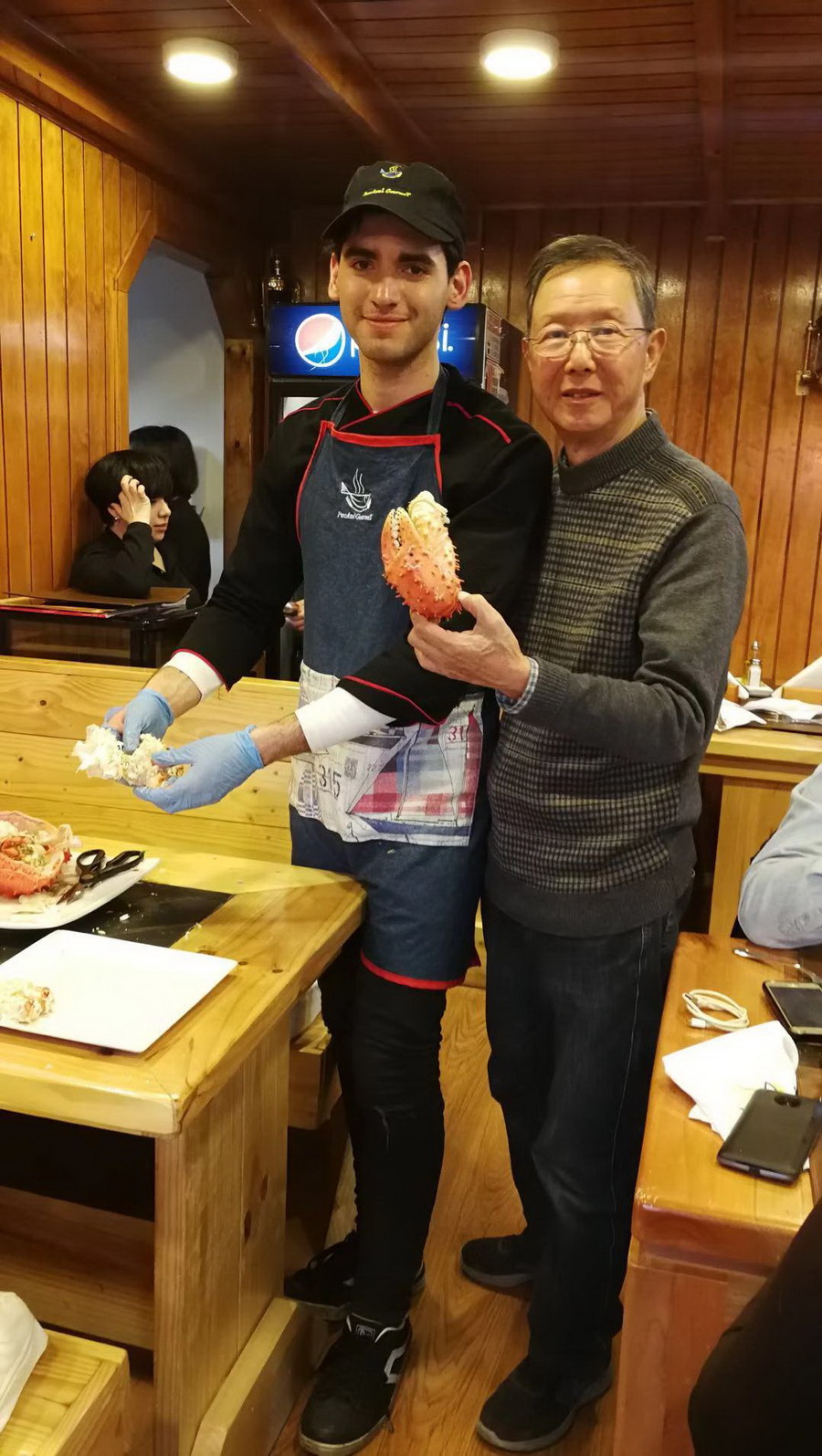 網(wǎng)友們選了一只5公斤多的活蟹,連同其他海鮮和兩瓶酒,9個(gè)人消費(fèi)了14750比索,合人民幣1500元左右,這個(gè)價(jià)格遠(yuǎn)低于阿拉斯加,只是國(guó)內(nèi)消費(fèi)蜘蛛蟹價(jià)格的不足一成。李仁奇攝