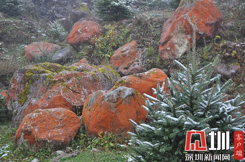 紅石對生長環(huán)境的要求極為苛刻,空氣潔凈度、濕度、水的清潔度都會影響它們的生長。雅家梗一代低碳富氧的空氣、冰山融雪的溪流、森林茂密的植被,為紅石的生長繁衍提供了最理想的環(huán)境。在這里,紅石密布于近百米寬的河谷里,不同的季節(jié),不同的天氣狀況下,幻化出不同的色彩,呈現(xiàn)朝紅夕褚的奇異景觀。