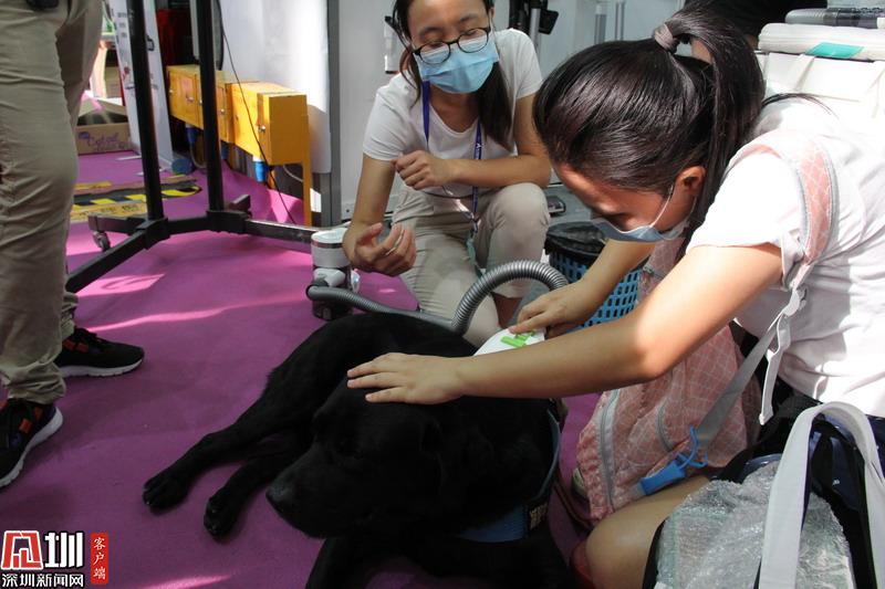 寵物醫(yī)生現(xiàn)場為寵物進行身體檢查。