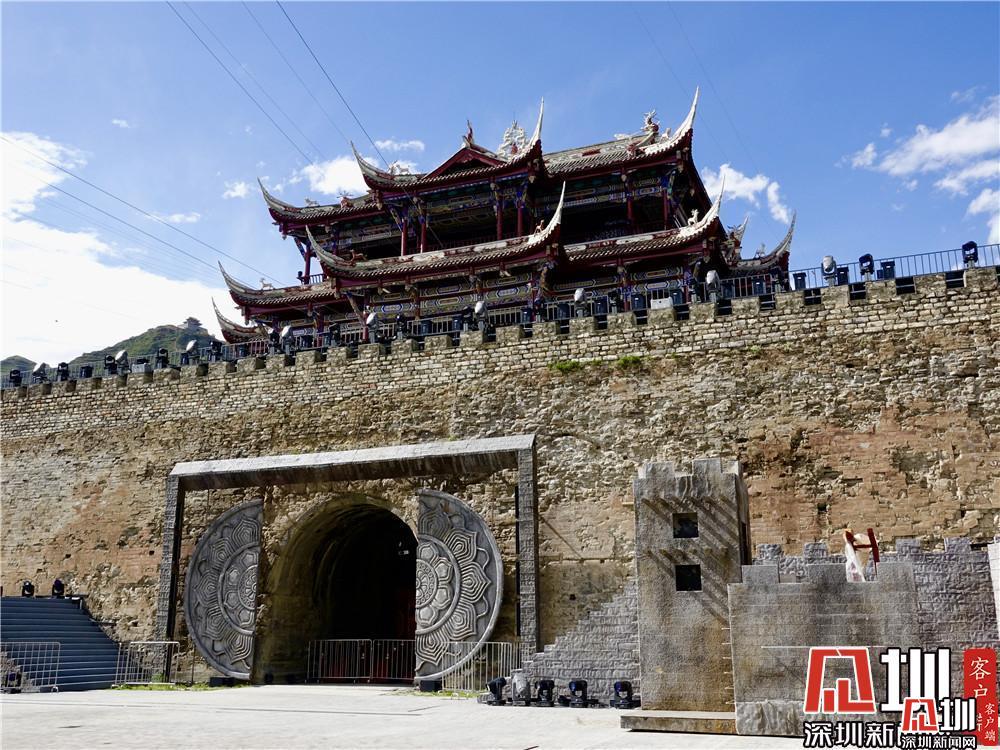 松潘古城分內(nèi)、外兩城,內(nèi)城平面跨崇山,依山順勢略呈三角形,城墻總長6.2公里,用本地?zé)频那啻u砌成墻身,內(nèi)填土石,高12.5米,厚12余米,以糯米、石灰、桐油熬制的灰漿勾縫,十分堅(jiān)固。各城門以大塊規(guī)則的長方條石券拱而成。李仁奇攝