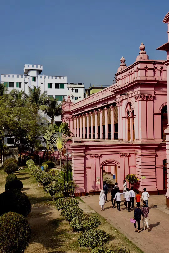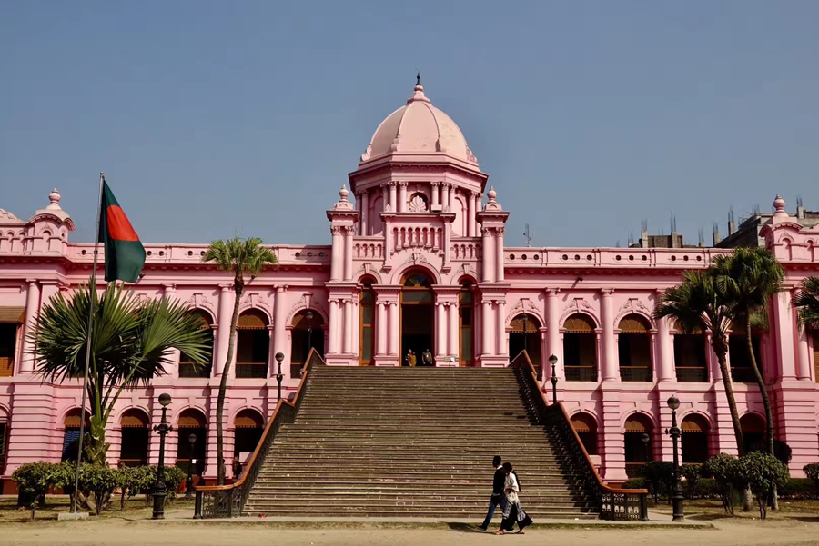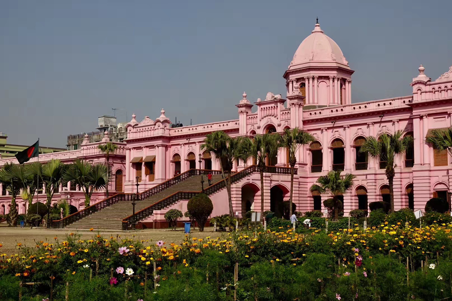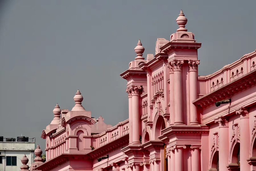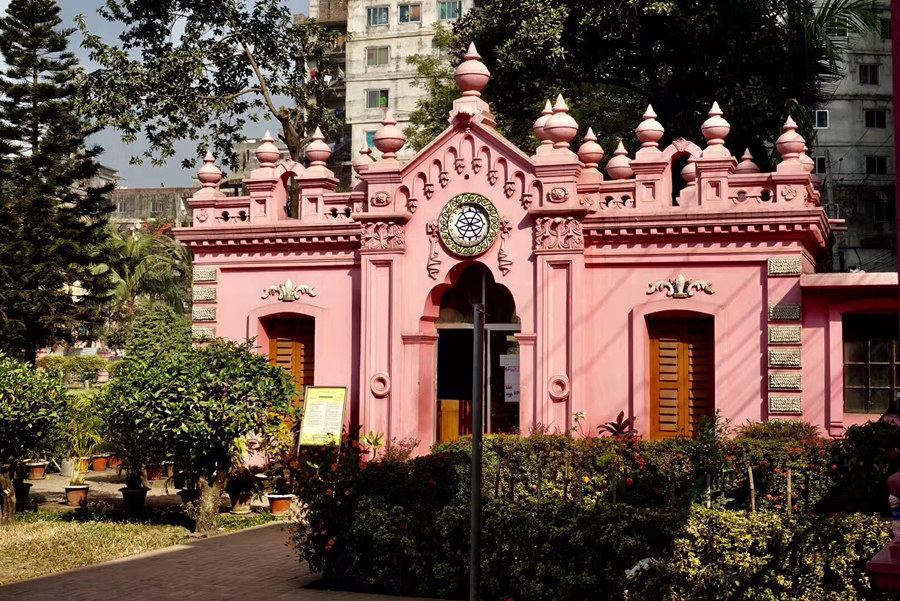 距孟加拉恒河渡口不遠(yuǎn)的地方有一座粉紅色宮殿式的豪華建筑。那是1872年一位名叫阿赫桑曼濟(jì)勒的地主在法國(guó)人留下的倉(cāng)房基礎(chǔ)上改建的私邸,后來(lái)曾在一次龍卷風(fēng)襲擊時(shí)受創(chuàng)。李仁奇 攝