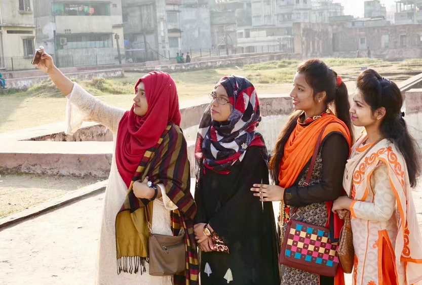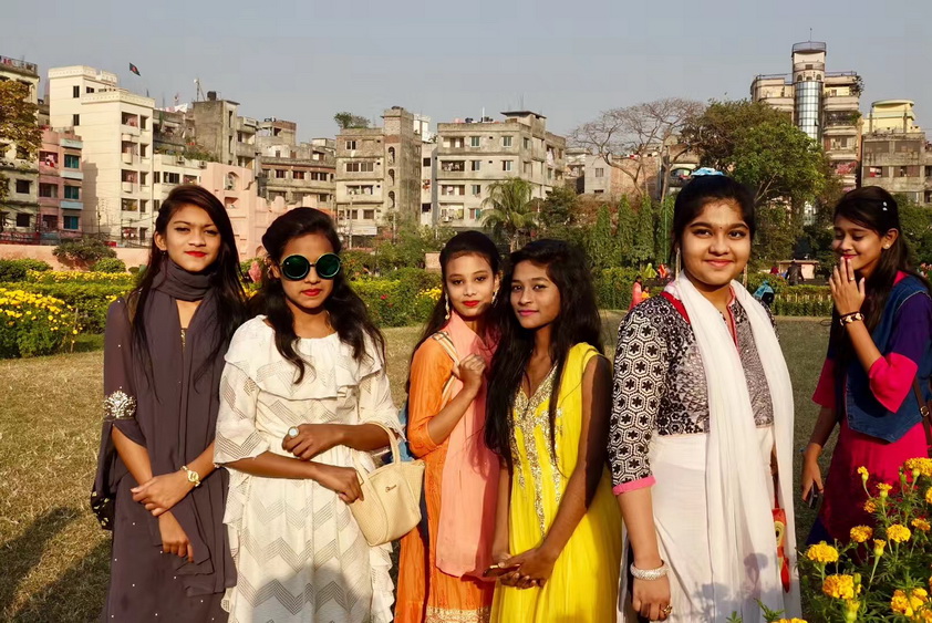 在達(dá)卡幾天時(shí)間里,感覺(jué)孟加拉國(guó)盛產(chǎn)美女,加之她們喜歡鮮艷的服飾,一些年輕女性就顯得更加靚麗。李仁奇 攝