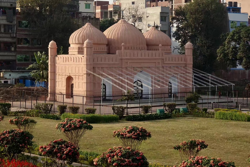 城堡內(nèi)有三座古建筑,即清真寺、帕瑞比比的墓和兩層高的莫臥爾王朝總督府。三座建筑由筆直的噴泉池連接,其間有面積很大的花園。因外觀模仿了印度泰姬陵,有人稱其為孟加拉的泰姬陵。李仁奇 攝
