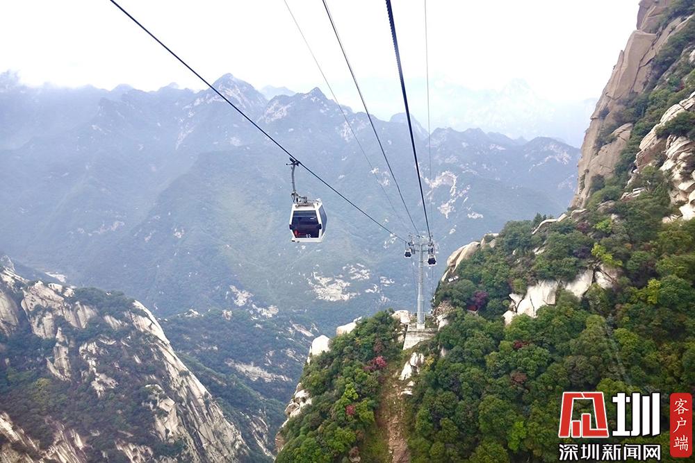 該索道2013年投入運營,打破了“自古華山一條路”的狀況,形成了不需走回頭路的新游線。華山索道一覽。李仁奇攝。