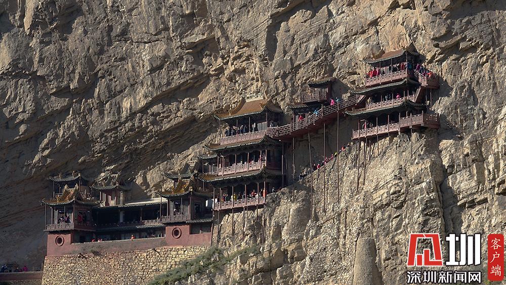 懸空寺建成于公元491年,是佛、道、儒三教合一的獨(dú)特寺廟。李仁奇攝。