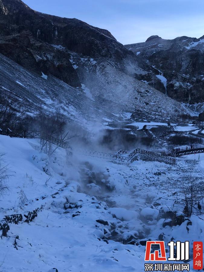 周圍一片銀裝素裹,冰天雪地,而這里熱氣騰騰,煙霧裊裊,實(shí)在是別有一番景致。