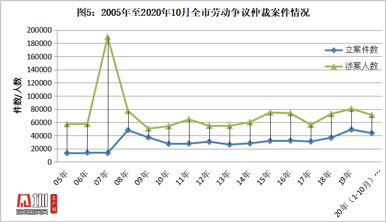 記者從發(fā)布會上獲悉,《勞動合同法》頒布實施之前,勞動爭議案件數(shù)量相對平穩(wěn),波動不大。2008年前后受到《勞動合同法》頒布實施和全球金融危機的雙重影響,進(jìn)入訴訟渠道的勞動爭議案件呈井噴式增長。2011年之后,隨著國內(nèi)外經(jīng)濟形勢好轉(zhuǎn)、用人單位用工方式的逐步規(guī)范以及政府主管部門執(zhí)法力度加大,勞資關(guān)系趨于穩(wěn)定,案件數(shù)量逐步回落。自2011年至今,深圳兩級法院受理的各類勞動爭議案件數(shù)量漸趨平穩(wěn),甚至有所下降。目前,案件數(shù)量已經(jīng)基本恢復(fù)至2008年之前的水平,但在全國范圍內(nèi),案件絕對數(shù)量仍然位于前列。