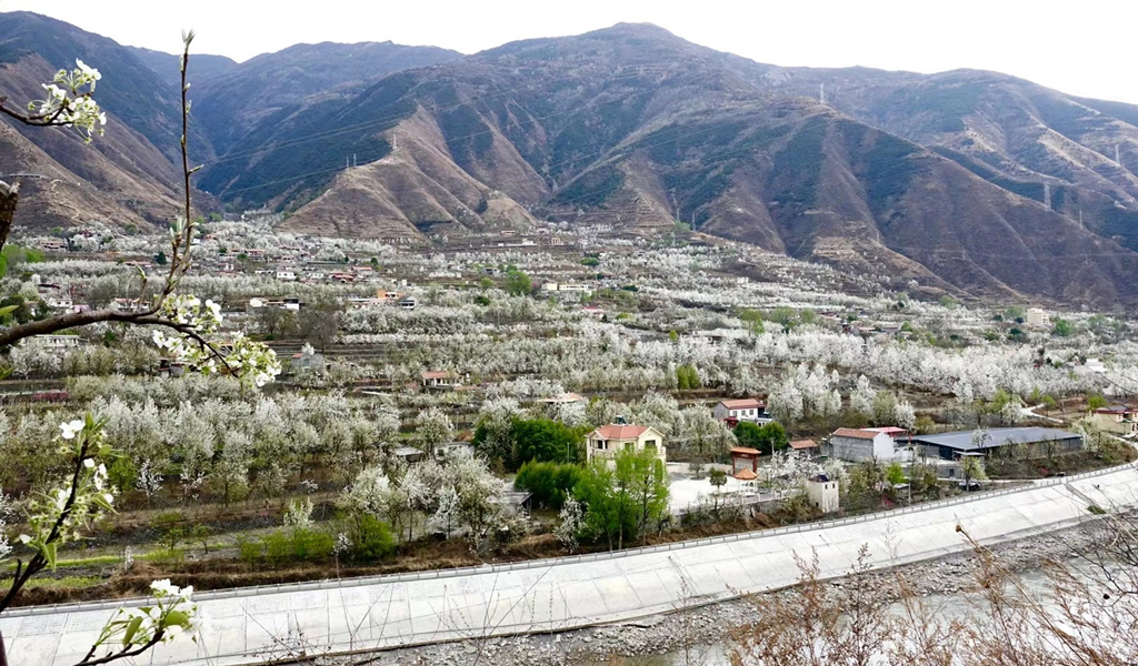 每年三到四月,金川縣的上百萬(wàn)株梨樹在春日照耀下盛開白花,萬(wàn)畝梨海、百里吐蕊。李仁奇 攝