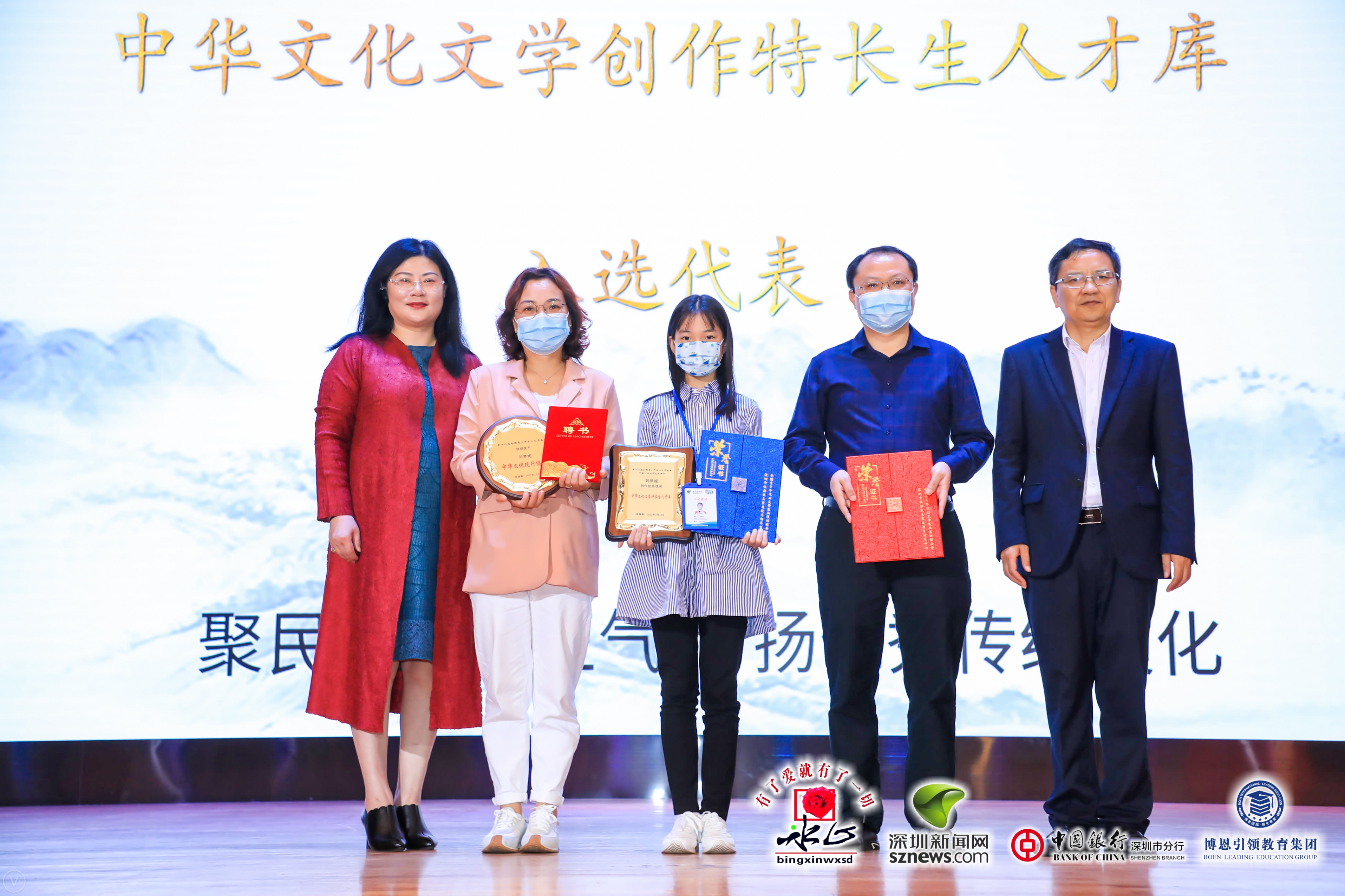 對入選“中華文化現(xiàn)行倡導(dǎo)者”“中華文化文學(xué)特長生人才庫”和“深網(wǎng)小記者”的代表劉夢妮進(jìn)行頒獎頒證