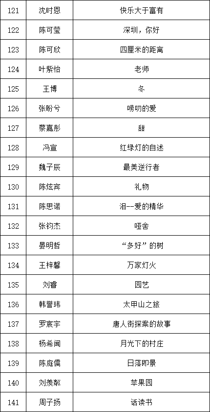 自2021年1月,活動征稿啟動以來,獲得了深圳市廣大中小學生、教師、文學愛好者的熱烈響應積極參與,吸引了深圳百余所學校的上萬人關(guān)注報名?,F(xiàn)公布龍華區(qū)玉龍學校專場晉級復賽名單如下: