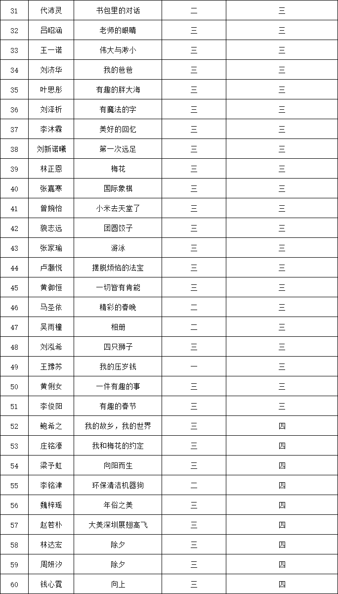自2021年1月,活動征稿啟動以來,獲得了深圳市廣大中小學(xué)生、教師、文學(xué)愛好者的熱烈響應(yīng)積極參與,吸引了深圳百余所學(xué)校的上萬人關(guān)注報名?,F(xiàn)公布福田區(qū)明德實驗學(xué)校碧海校區(qū)專場晉級復(fù)賽名單如下: