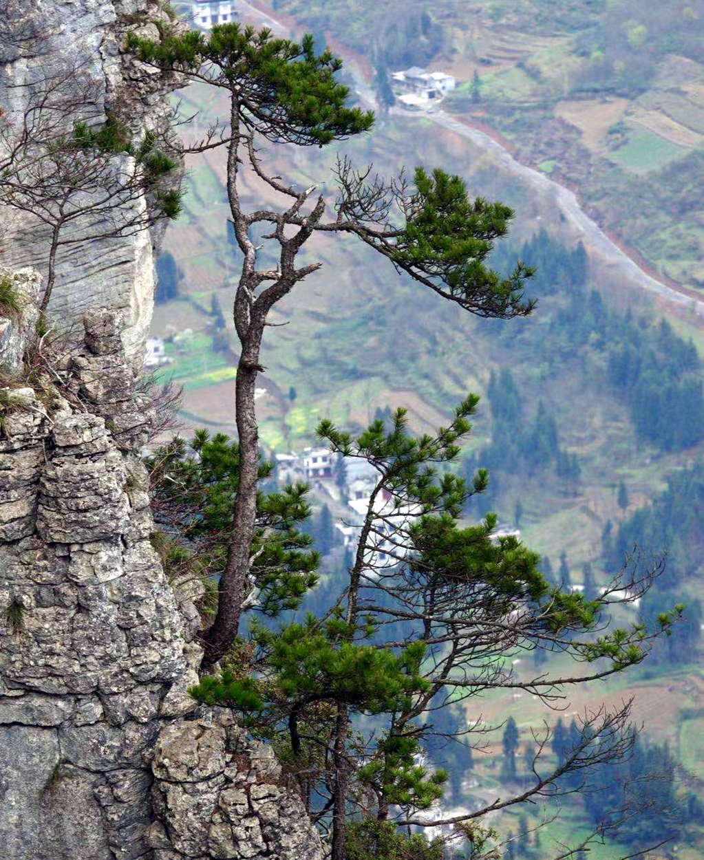 生長(zhǎng)在山崖邊的松樹,沿壁而生,枝葉向外微微傾斜。李仁奇 攝