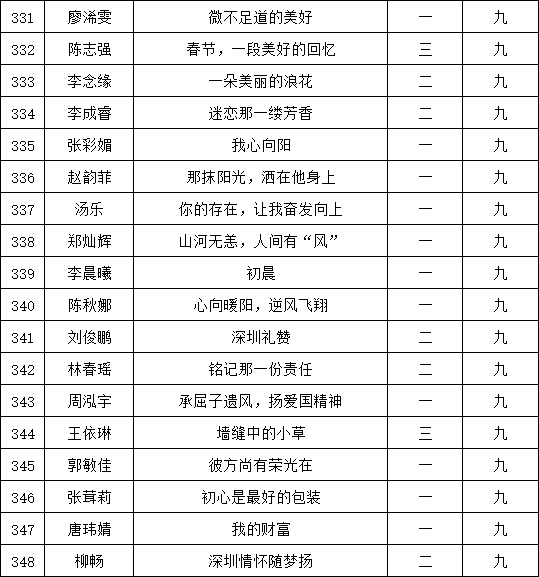 深圳市小學(xué)、初中、高中、大學(xué)在校學(xué)生,教師,文學(xué)愛(ài)好者。