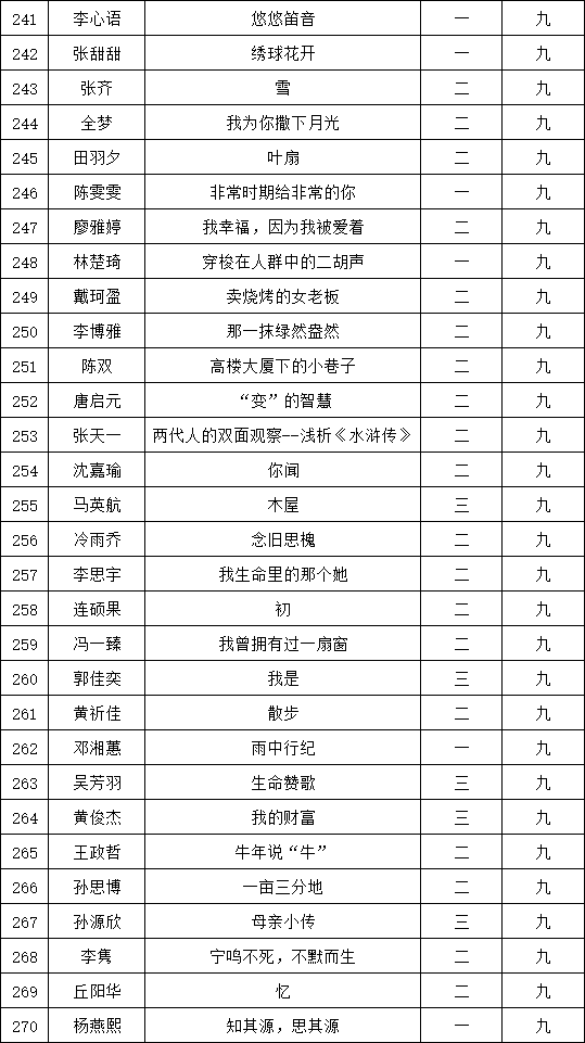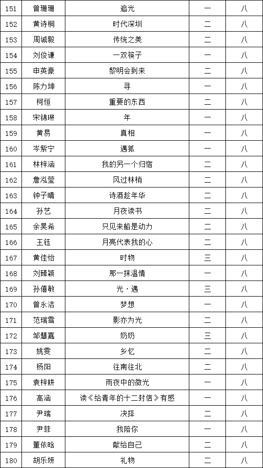 自2021年1月,活動(dòng)征稿啟動(dòng)以來(lái),獲得了深圳市廣大中小學(xué)生、教師、文學(xué)愛(ài)好者的熱烈響應(yīng)積極參與,吸引了深圳百余所學(xué)校的上萬(wàn)人關(guān)注報(bào)名?,F(xiàn)公布福永中學(xué)晉級(jí)復(fù)賽名單如下: