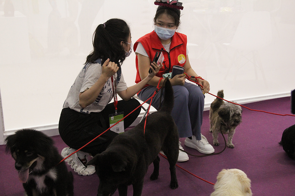 掃碼贈送寵糧試吃的活動現(xiàn)場。