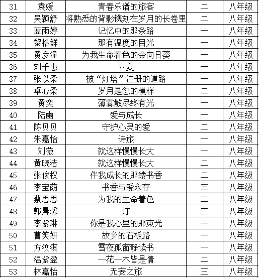 自2021年1月,活動征稿啟動以來,獲得了深圳市廣大中小學(xué)生、教師、文學(xué)愛好者的熱烈響應(yīng)積極參與,吸引了深圳百余所學(xué)校的上萬人關(guān)注報名?,F(xiàn)公布光明區(qū)鳳凰學(xué)校晉級復(fù)賽名單如下: