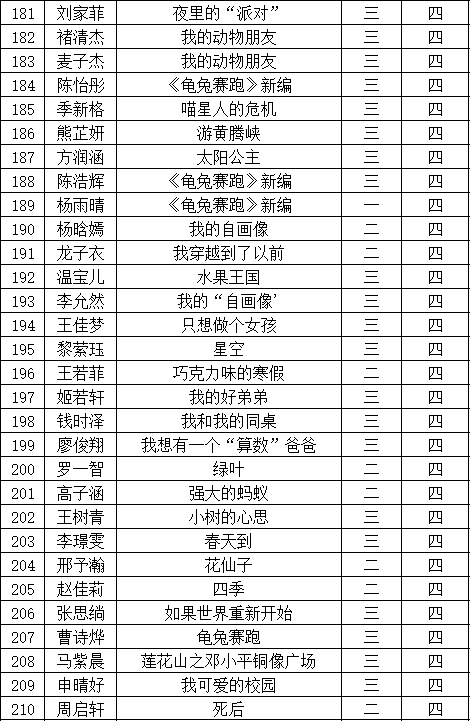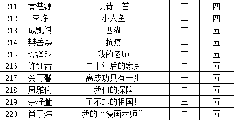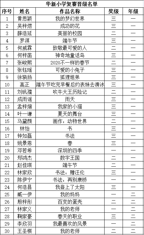 自2021年1月,活動(dòng)征稿啟動(dòng)以來,獲得了深圳市廣大中小學(xué)生、教師、文學(xué)愛好者的熱烈響應(yīng)積極參與,吸引了深圳百余所學(xué)校的上萬人關(guān)注報(bào)名?,F(xiàn)公布福田區(qū)華新小學(xué)晉級(jí)復(fù)賽名單如下: