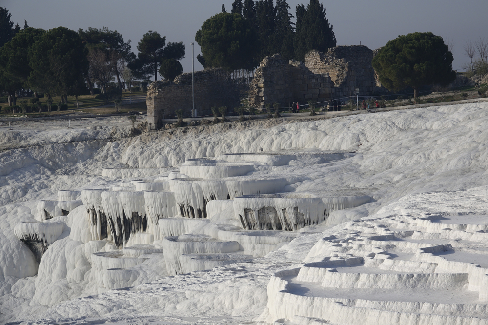 棉花堡是土耳其最著名的旅游景區(qū)之一,位于土耳其西南部紡織工業(yè)城市代尼茲利附近,與緊鄰它的希拉波利斯古城一起被聯(lián)合國教科文組織列為世界自然文化雙遺產(chǎn)。李仁奇 攝