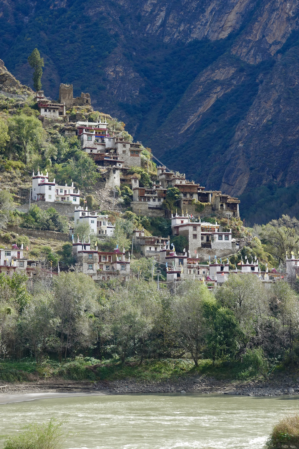 嘉絨藏民多居住在河谷或半山向陽的寨子里。自古以來,他們建就地取材建房,用黃泥作粘合劑,以石塊砌墻,以巨木為梁,橫搭雜木,蓋土于上,堅(jiān)固不漏。李仁奇 攝