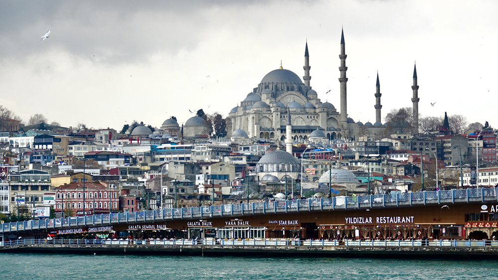 加拉塔大橋橫跨金角灣,連接老城區(qū)和新城區(qū),是眾多輪渡的始發(fā)站和公交總站。橋上行車,橋下是餐館,餐館外是行人步道,中間是航道,很是奇特。李仁奇 攝