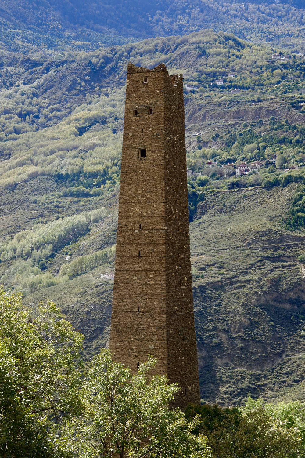 碉樓的建造不用外搭腳手架,沒有圖紙,全憑工匠的經(jīng)驗(yàn),七凸八翹沒有一塊相同、大大小小的石塊壘砌成平整如磚墻的面,工匠必須具有復(fù)雜的處理各種材料之間犬牙交錯的矛盾的能力,這種藝術(shù)能力里面蘊(yùn)藏了復(fù)雜精湛的藝術(shù),而且最終的結(jié)果是碉樓像金字塔一樣穩(wěn)固。李仁奇 攝