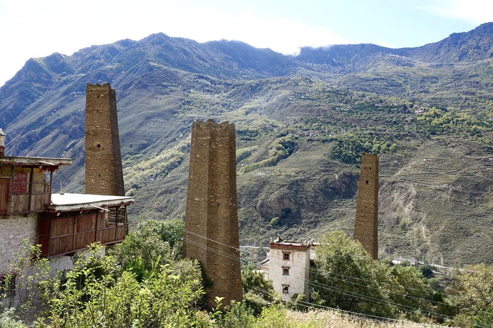 在它的后面三個(gè)碉樓特別吸引眼球。左邊第一座是五角碉,第二座是八角碉,第三座是常見的四角碉。李仁奇 攝