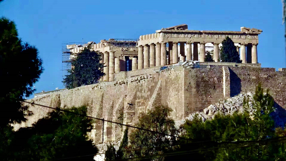 雅典衛(wèi)城中的帕特農(nóng)神廟,又名雅典娜神廟,是專門供奉雅典娜女神的神殿。距今2000多年的歷史,如今廟頂坍塌,雕像蕩然無存,浮雕剝蝕嚴(yán)重,但從屹立的廊柱中依然可見當(dāng)年的風(fēng)姿。李仁奇 攝