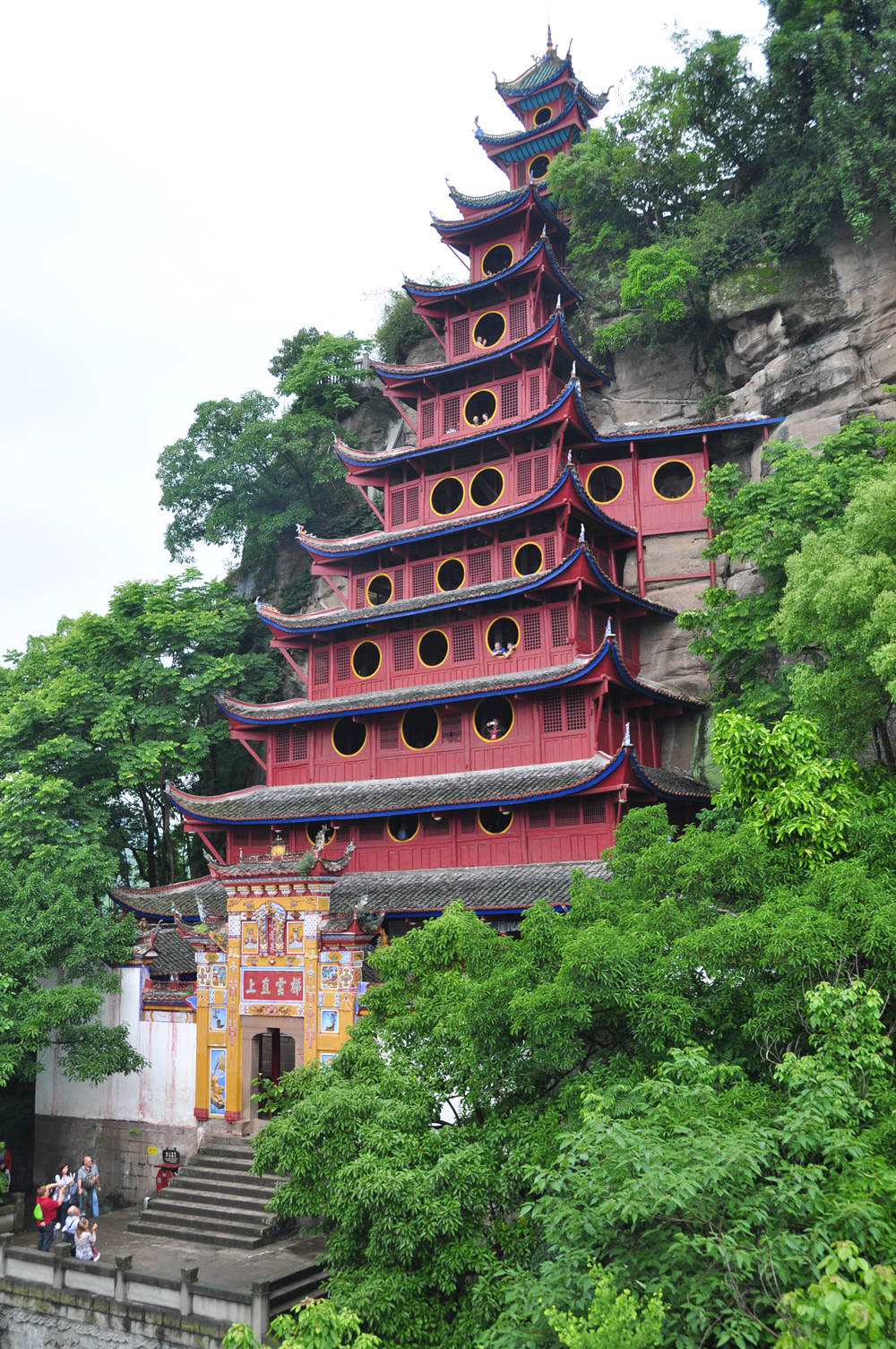 全寨共分兩部分,山下9層和山上3層錯(cuò)落有致,從遠(yuǎn)處眺望12層樓重檐高聳,渾然一體,宏偉壯觀,共高56米,閣內(nèi)每層石壁上均有題詠。李仁奇 攝