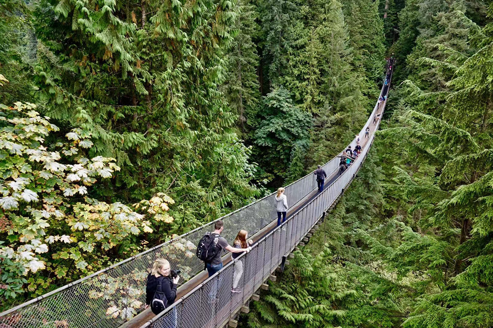 位于溫哥華北部的卡佩蘭奴吊橋,是溫哥華最具代表性和震撼力的名勝之一。它橫跨寬達(dá)450英尺的卡佩蘭奴河,懸掛在230英尺高空。李仁奇 攝