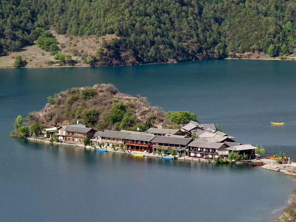 當?shù)厝朔Q瀘沽湖為“謝納咪”,意為大海、母湖,從高處鳥瞰,如一只展翅的飛燕,被譽為“高原明珠”。李仁奇 攝