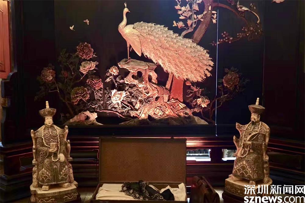 這座城堡擁有98個(gè)房間,包括放置雕漆屏風(fēng)和清朝帝后塑像的中式風(fēng)格房間。李仁奇 攝